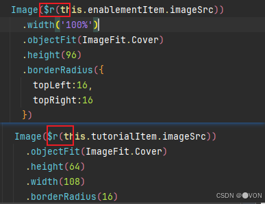 官方解释:json中数据由于无法使用$r()进行资源访问,所以使用的是字符串"app.media.banner_pic0",而在页面中直接声明时,使用的是$r('app.media.banner_pic0'),而Image组件是无法直接读取字符串"app.media.banner_pic0"的,所以这里需要进行内容调整。