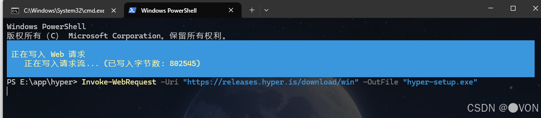 # 下载 Hyper 安装文件到当前目录 Invoke-WebRequest -Uri "https://releases.hyper.is/download/win" -OutFile "hyper-setup.exe"