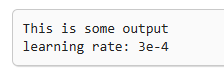 args = parser.parse_args()if args.output:print("This is some output")print(f"learning rate:{args.lr} ")