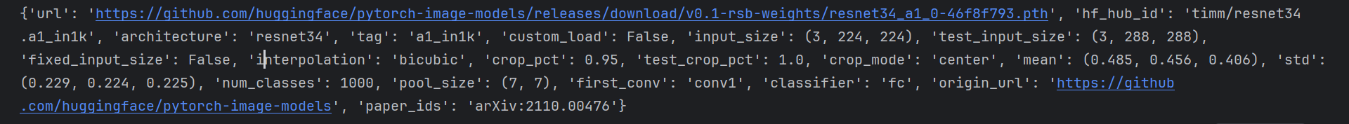 查看模型的具体参数 当我们想查看下模型的具体参数的时候,我们可以通过访问模型default_cfg