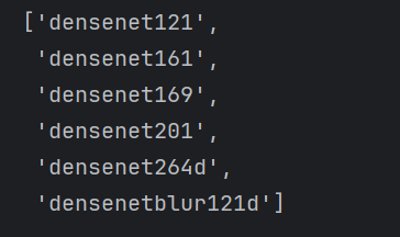我们发现以列表的形式返回了所有densenet系列的所有模型。