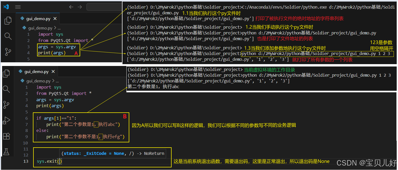 sys模块是与python解释器交互的系统级工具,主要处理比如命令行参数、程序终止和系统配置等方面的功能。上图代码用到sys模块的只有第1、4、12行,下面我用代码直观展示一下这三行代码的作用: