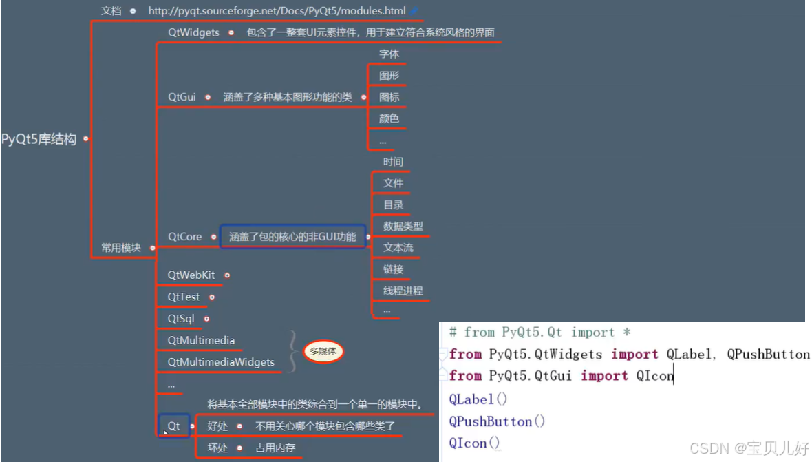 从具体内容上看,我们就是要学习PyQt5库的这些模块: