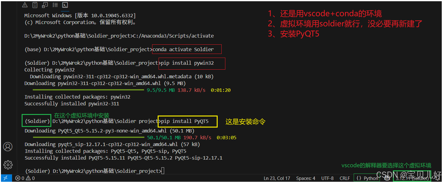 既然我们用的是PyQT5,那开发环境自然是python,编辑器我们用VSCode。至于如何安装python,以及如何创建虚拟环境、如何安装和使用VSCode,如果你认真看过我前面的博文,这里就是pip install PyQT5这么简单了: