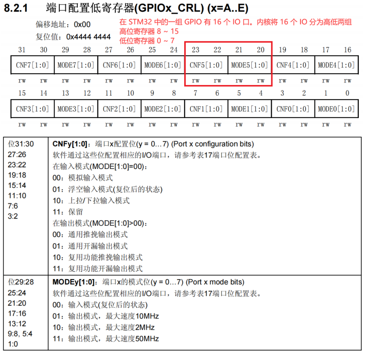 GPIOB->CRL 32位寄存器 0100 0100 【????】 0100 0100 0100 0100 0100