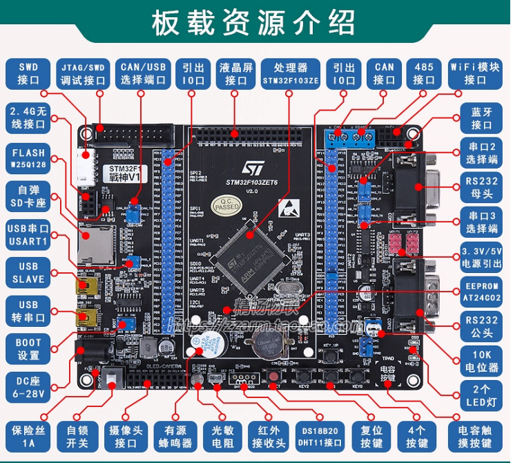 主包学习使用的开发板是STM32F103ZET6,图中这个