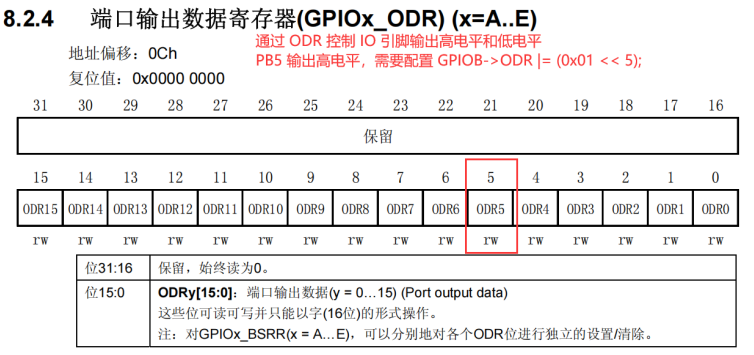 3. 控制 GPIOx_ODR 寄存器,配置高低电平