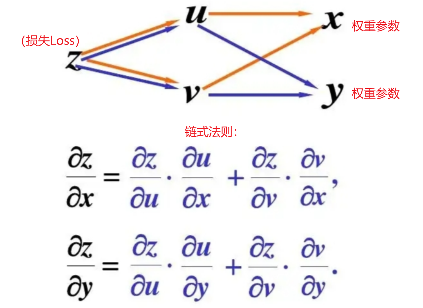 - 1.通过链式法则,计算出了偏导数