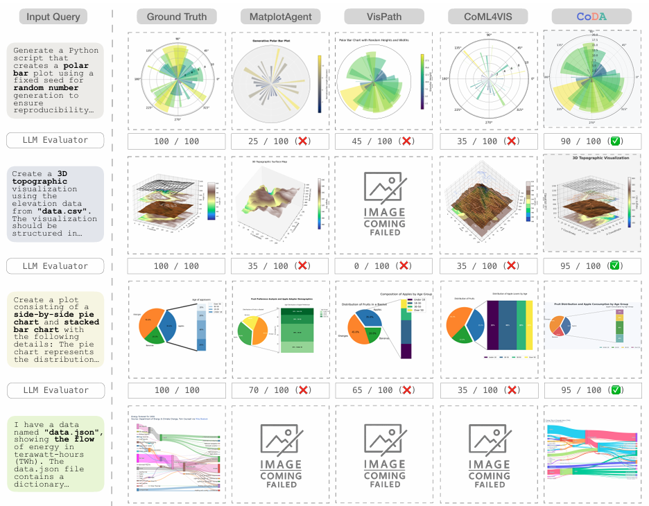CoDA生成的可视化图表在准确性、清晰度和美观性方面均达到了高标准。