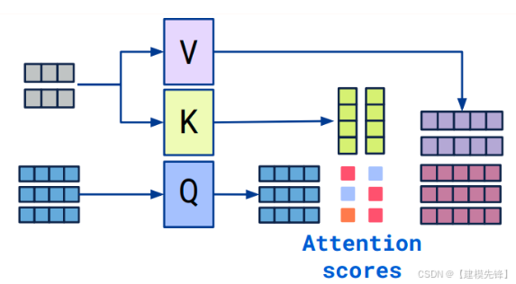 一个序列作为输入的Q,定义了输出的序列长度,另一个序列提供输入的K&V