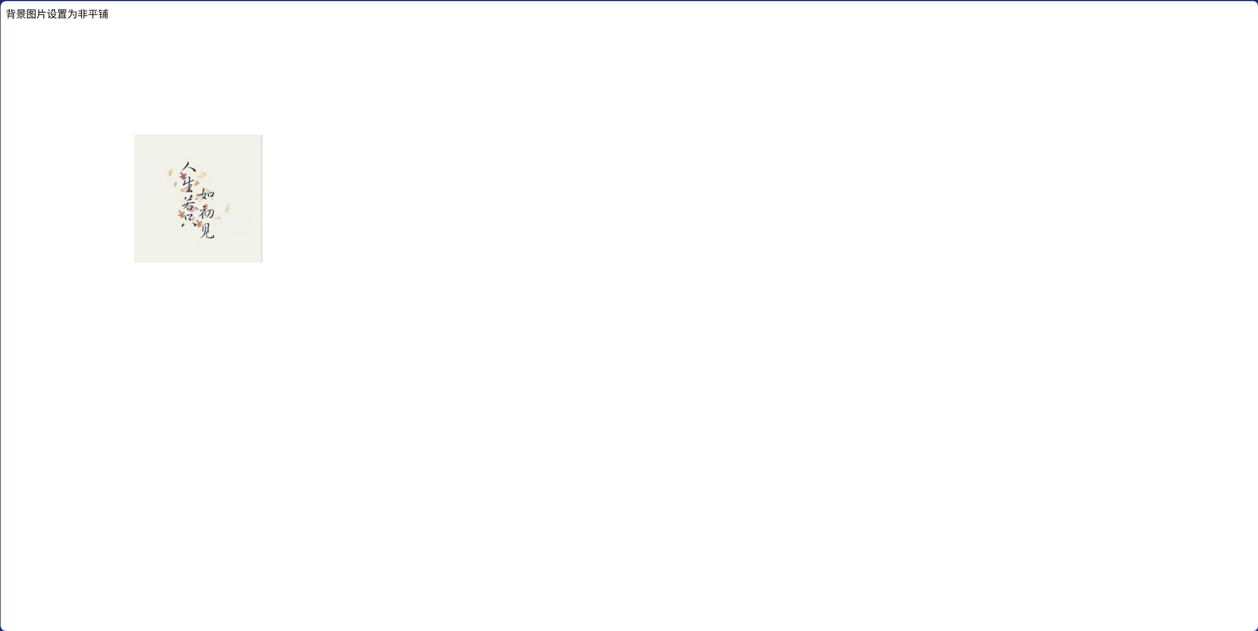 <body><!-- 设置背景颜色 --><!-- <div class="smallbox bkcolor"> 背景颜色为绿色</div> --><!-- 设置背景图片及平铺方式 --><!-- <div class="smallbox photo1">背景图片默认为平铺</div> --><div class="bigbox photo2 position size">背景图片设置为非平铺</div></body>