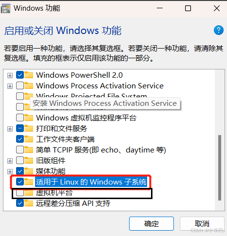 2、启动windows功能-适用于Linux的windows子系统和虚拟机平台