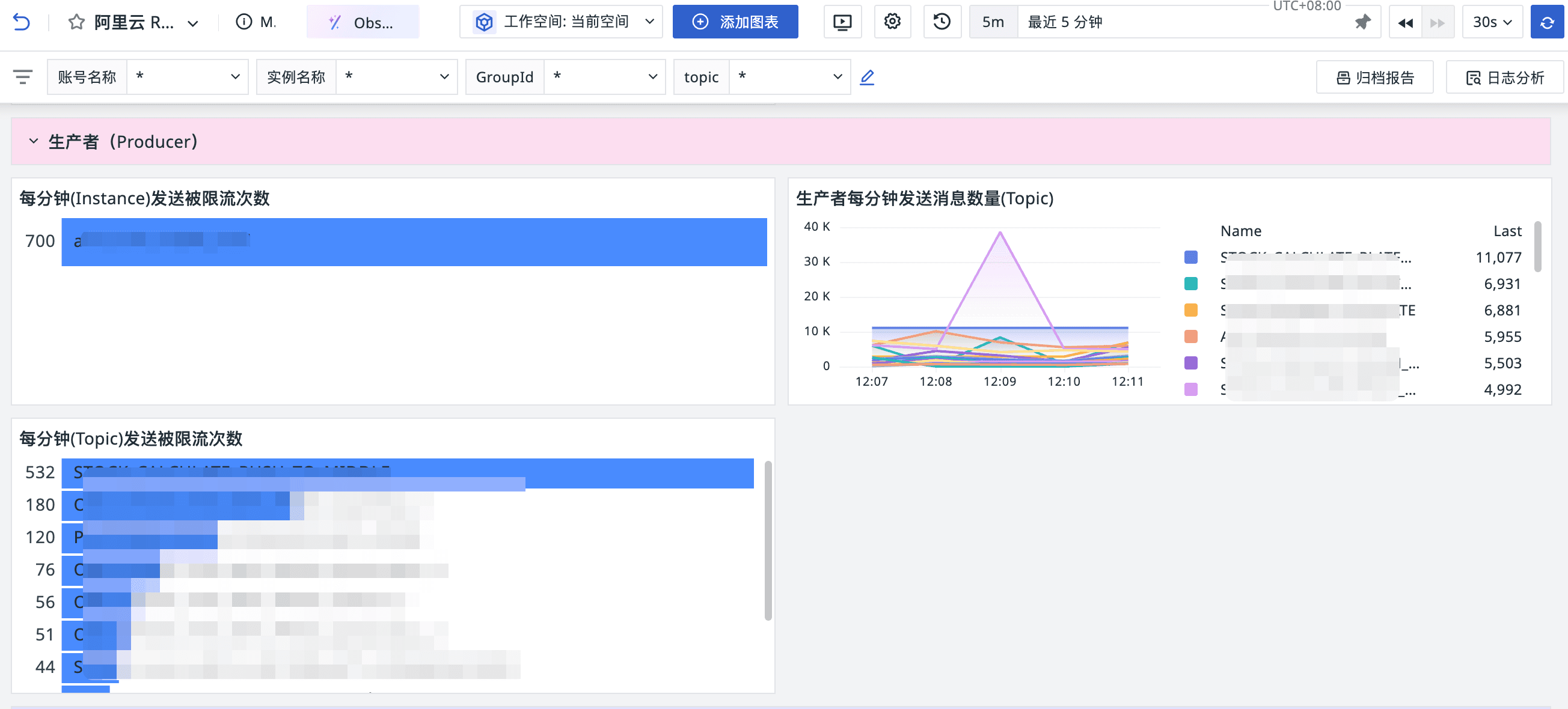 生产者(Producer)分组,可以看到RocketMQ 5.0的生产者相关指标