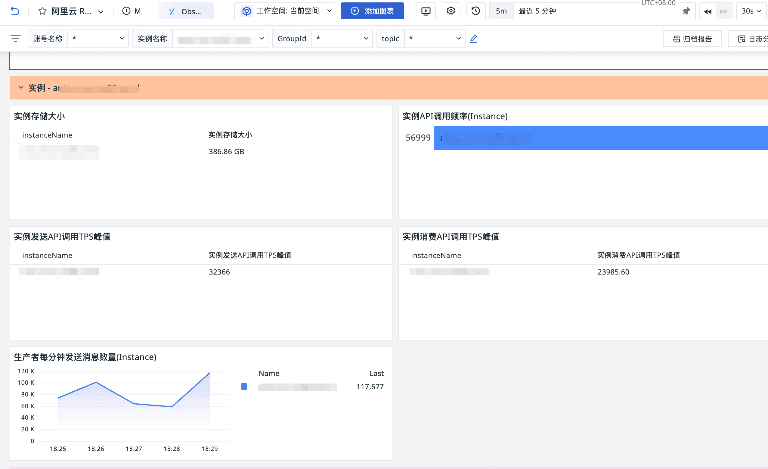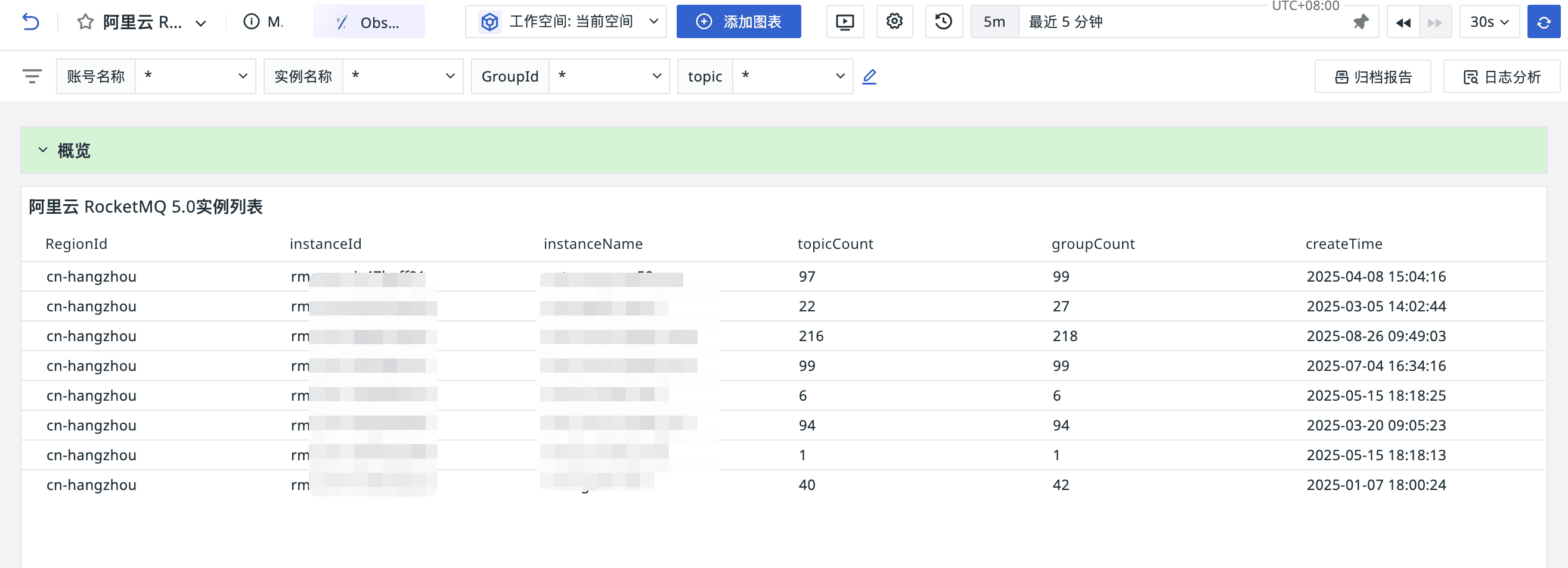 实例(Instance)分组,可以看到RocketMQ 5.0实例相关指标