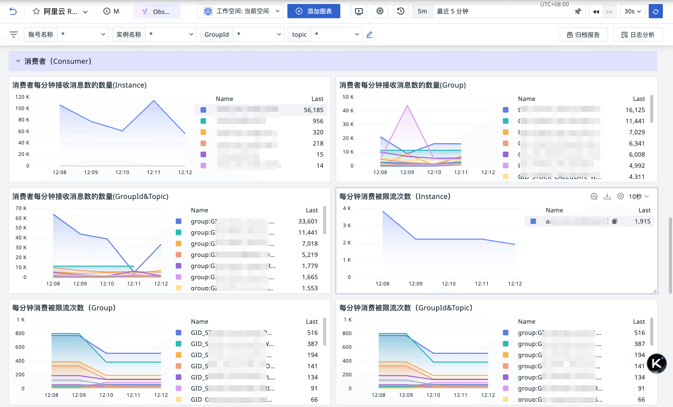 消费者(Consumer)分组,可以看到RocketMQ 5.0消费者相关指标