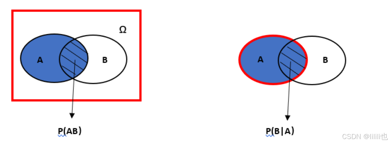 P ( B ∣ A ) 和P ( A ∣ B ) 代表的含义是不一样的,如下图所示