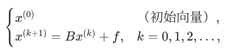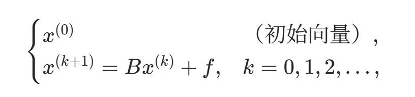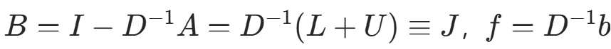 设 ,在系数矩阵 A 的分裂 A=D−L−U=M−N 中,选取 M=D,得到解 Ax=b 的雅可比迭代法