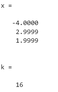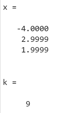 x =-4.00002.99991.9999k =15x =-4.00002.99991.9999k =12x =-4.00002.99991.9999k =9x =-4.00003.00002.0000k =7x =-4.00003.00002.0000k =10x =-3.99993.00002.0000k =14