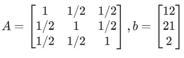 >> A = [1, 0.5, 0.5; 0.5, 1, 0.5; 0.5, 0.5, 1]; b = [12,21,2]';