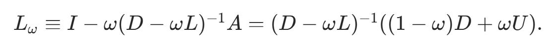 算法原理:取分裂矩阵(ω>0 为松弛因子),迭代矩阵: