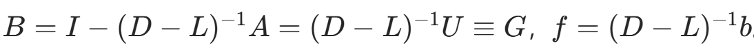 算法原理:设,对 A=D−L−U=M−N,取 M=D−L,得迭代法: