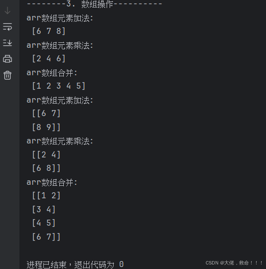 print("arr数组合并:\n",concatenate2d)# 4. 常用数学函数