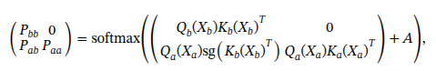 x 为注意力层的输入,Q、 K是注意力层的query 和key的投影向量,A 是掩码