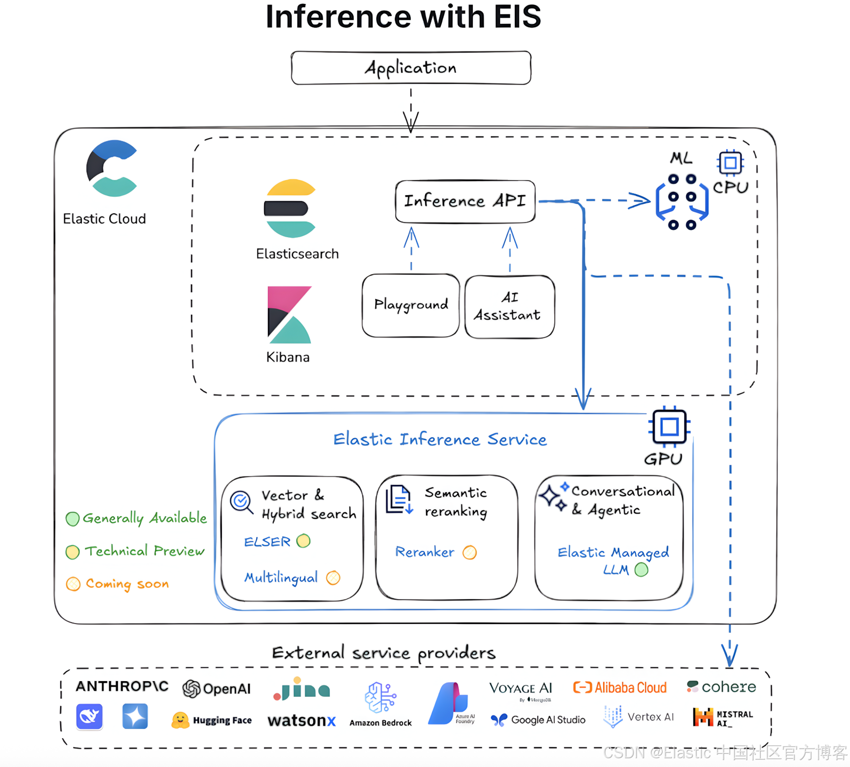 - 访问方式:所有 CSP 和区域的 Elastic Cloud 无服务器和 Elastic Cloud 托管部署都可以访问 EIS 上的推理端点。