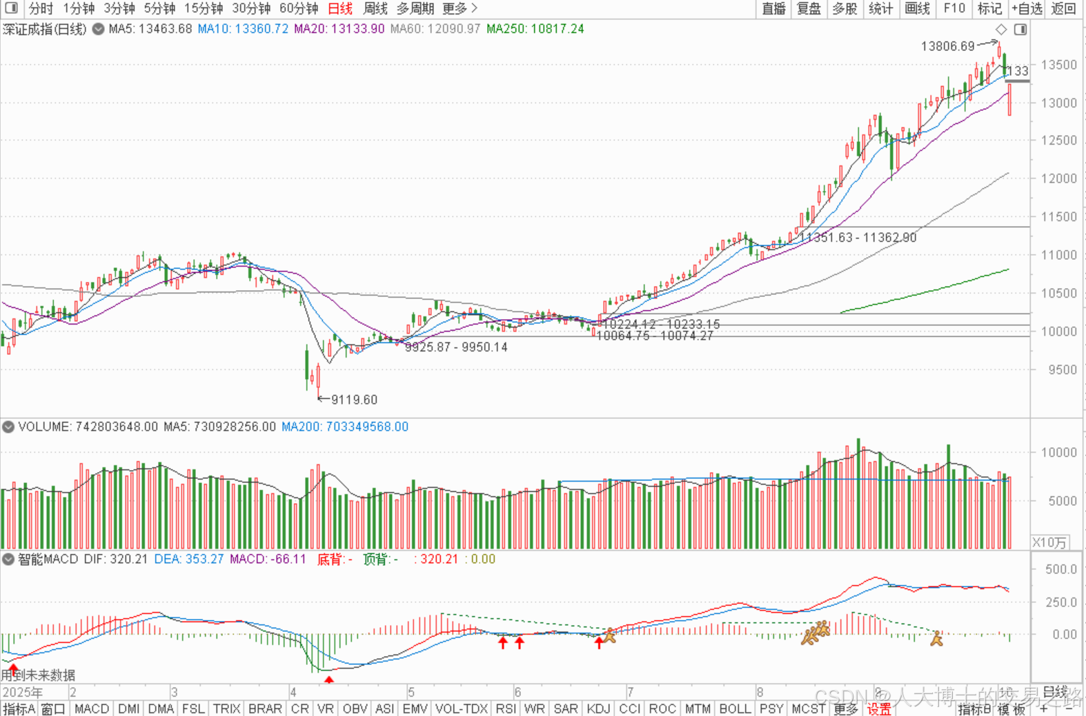 上证指数收周末消息影响今天大幅低开一路拉升假阳线,小幅下跌但收盘价站上10日和20日均线但未站上5日均线,目前均线依然多头排列。板块上消息相关的稀土、半导体涨幅靠前。