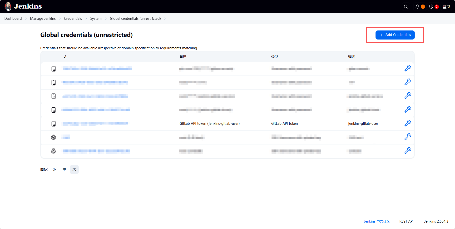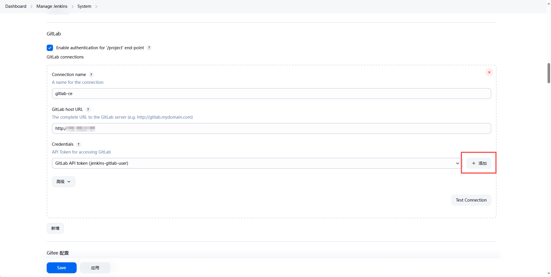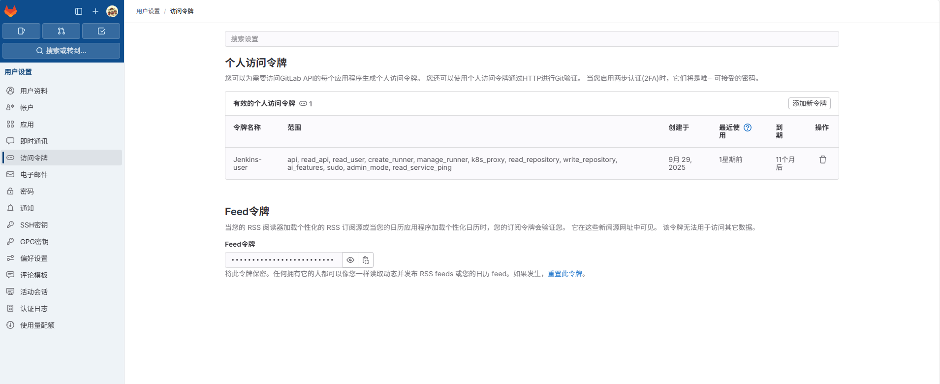 配置该凭证是为了让Jenkins可以连接gitlab,此处用到的是在gitlab上创建的用户的访问令牌;