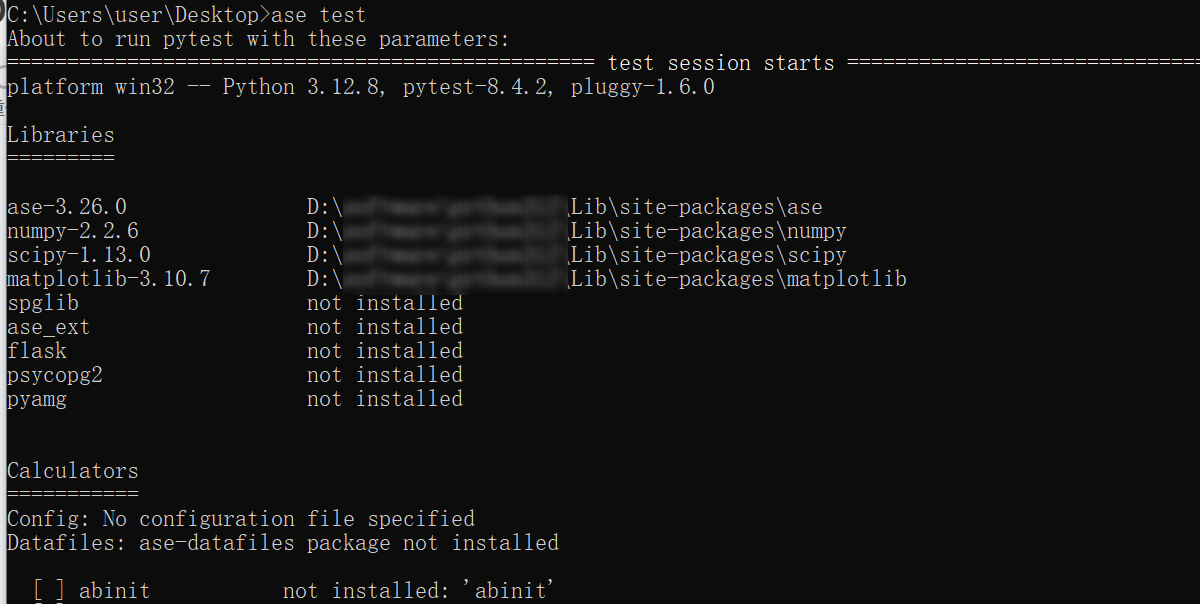 ASE 需要 pytest 来运行测试,但系统没有安装 pytest: