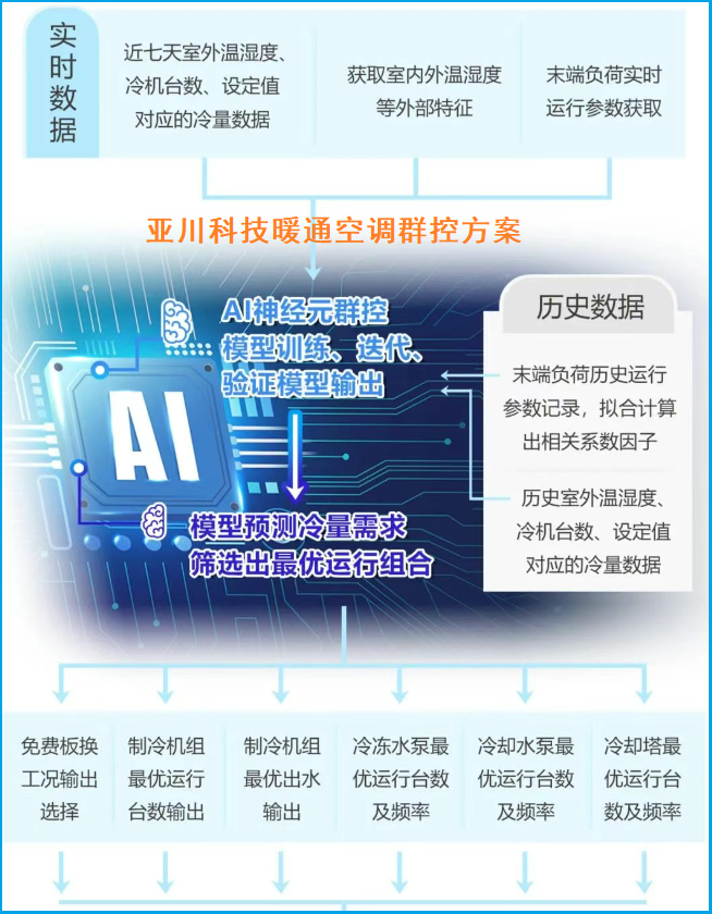 设备协同效率低下 | 冷水机组、水泵、空调箱独立运行,系统 COP(能效比)常低于 2.8 | 人工调节响应滞后,设备组合始终偏离最优工况,输配能耗浪费达 30% |