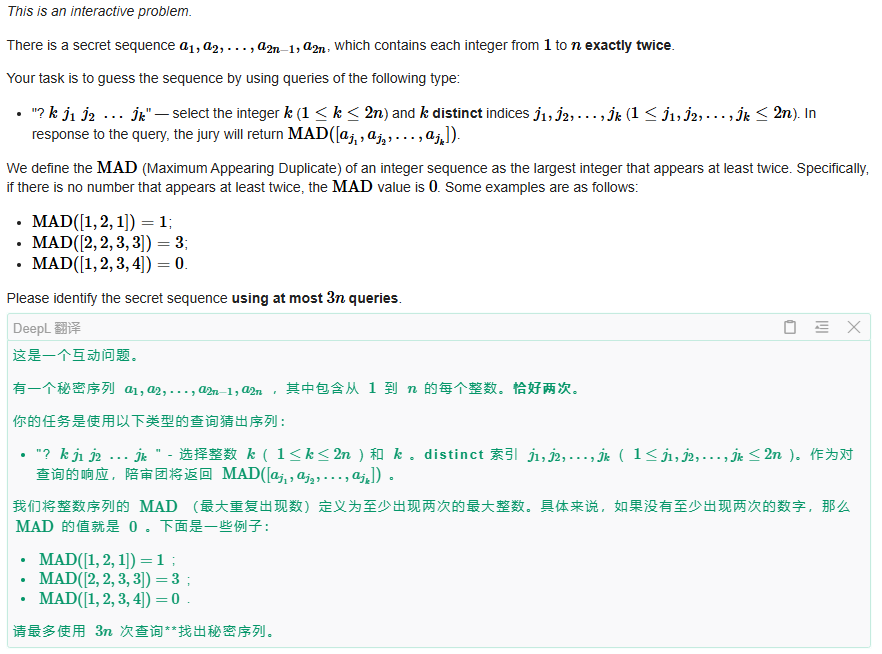 对于互动加构造题,它们都有一个很通俗的做法:研究题目给的条件的性质。关于这个 MAD 我就不多说了。我们来思考这个 MAD 有什么用。