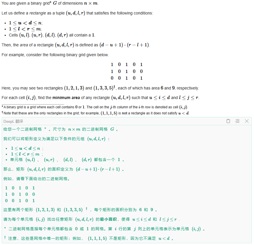 首先我们不难想到一个 O(n3m3)O(n^3m^3)O(n3m3) 的做法:枚举上下左右的边界,然后看看是否满足条件,如果满足,直接枚举中间每一个格子,然后更新答案,最坏情况下 O(n3m3)O(n^3m^3)O(n3m3)。