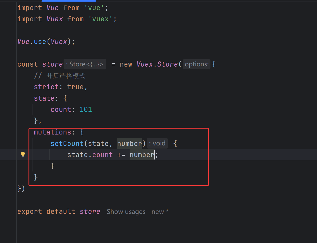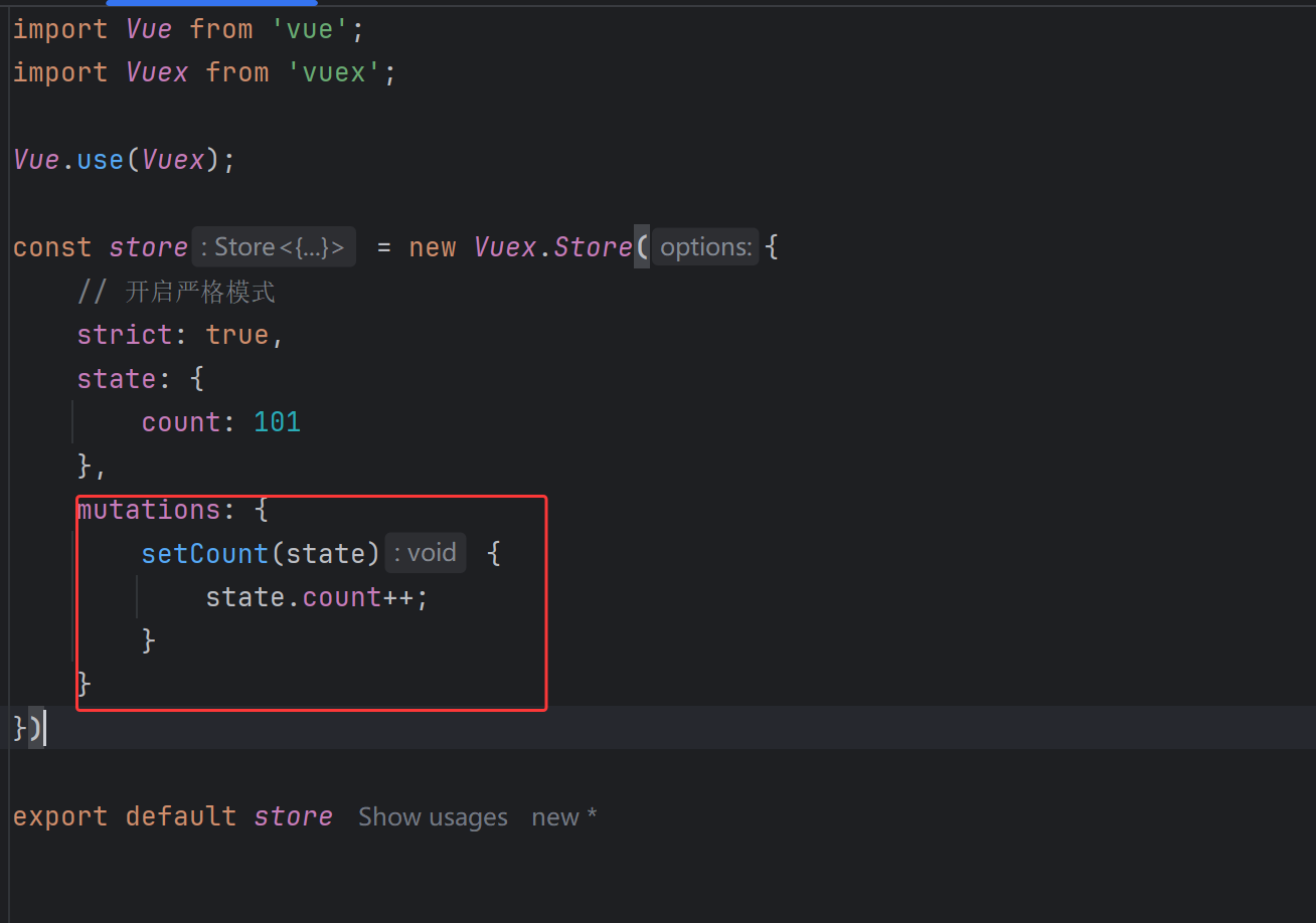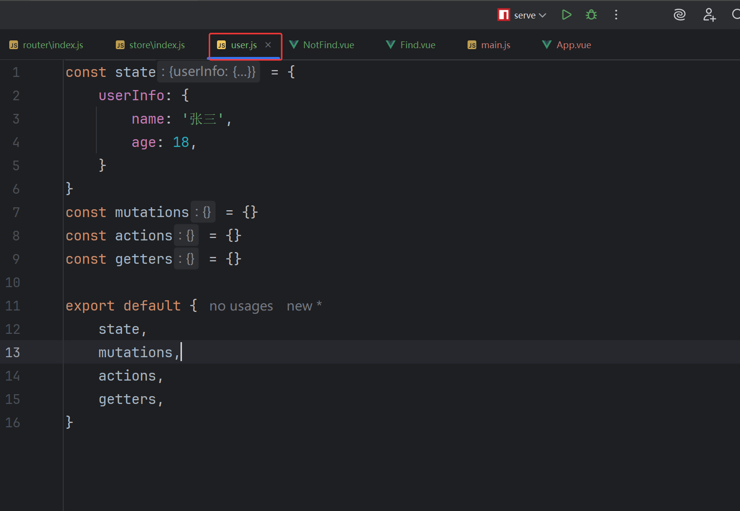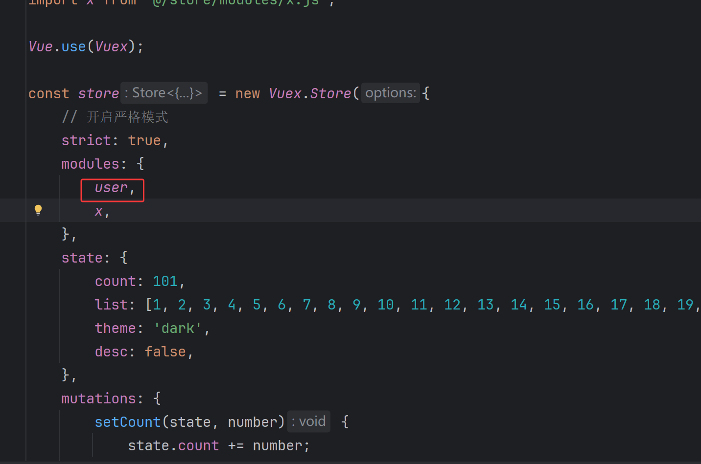 export default {state: { name: '陈陈陈' },mutations: {setName(state, name) {state.name = name}}