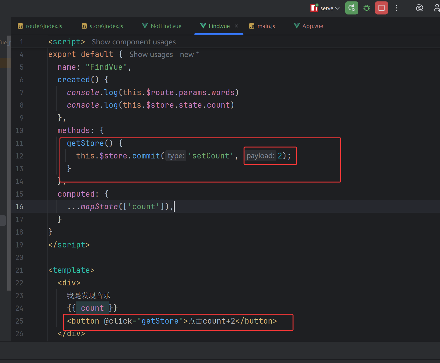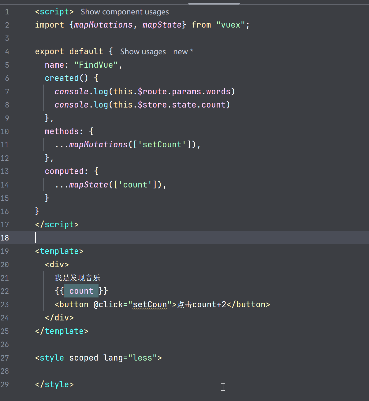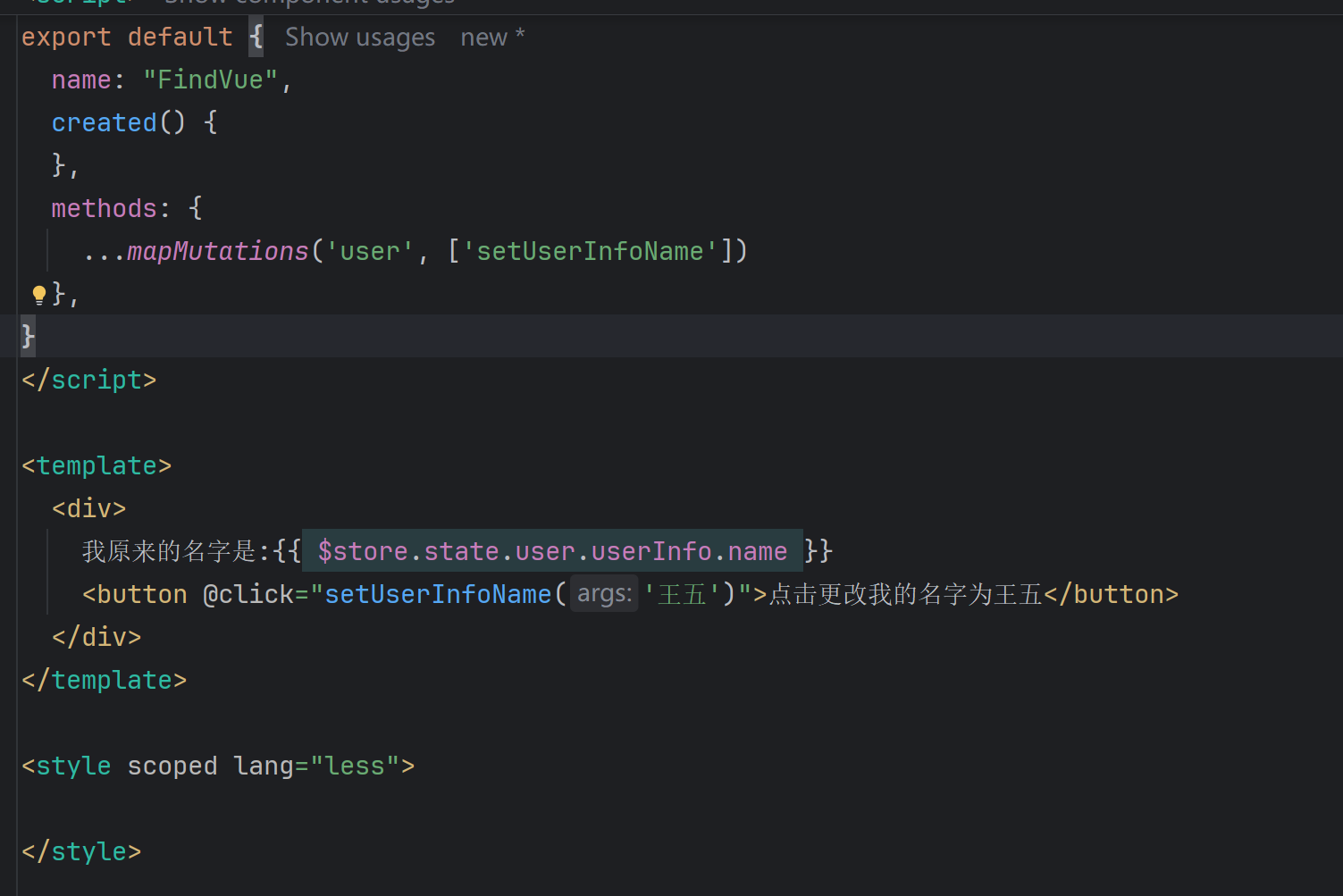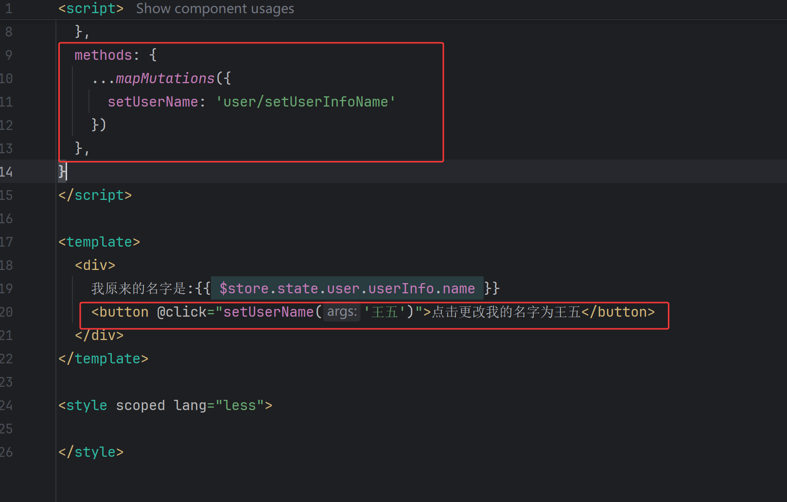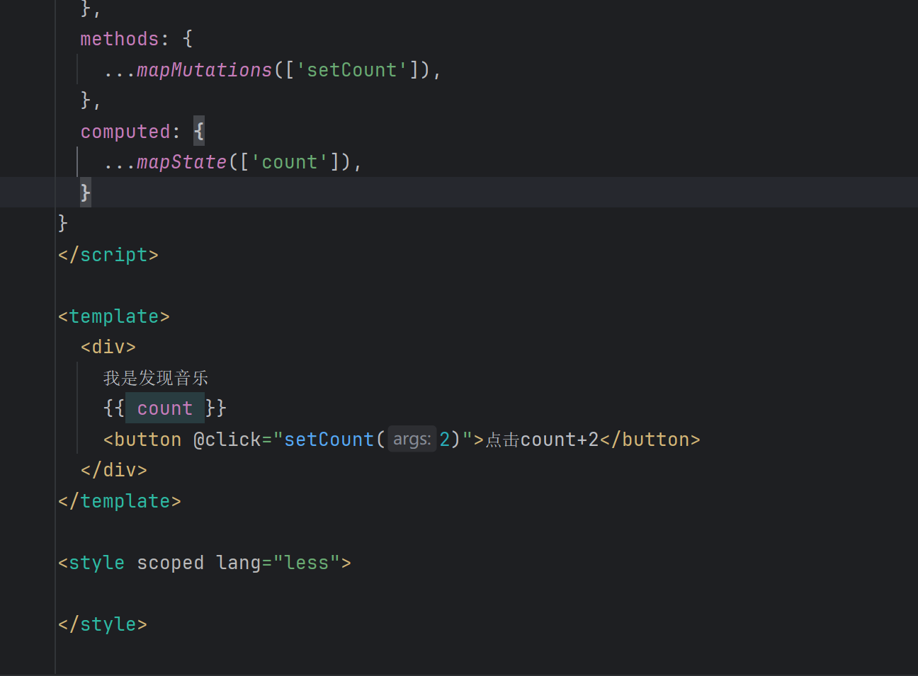 同样mutations也有简化代码的辅助函数mapMutations,它是将位于mutations中的方法提取出来,映射到组件中的methods方法中