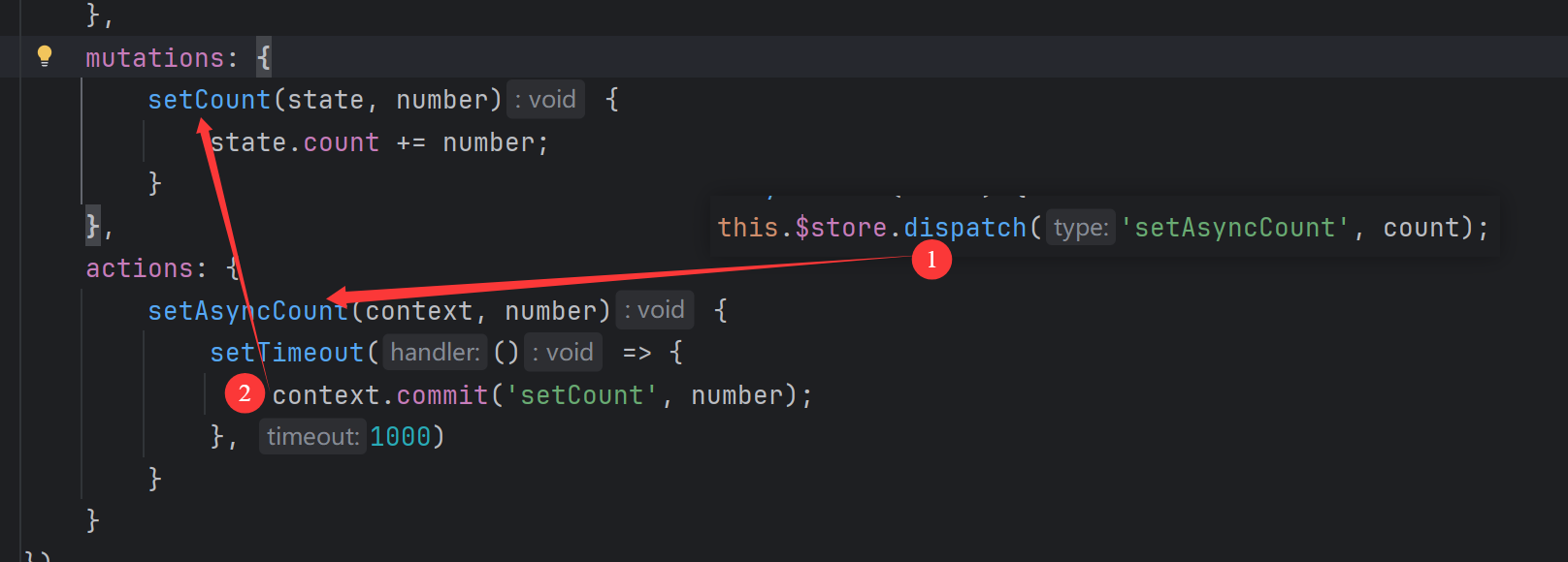 actions是vuex中用于处理异步操作的,类似于一秒钟之后将count+6这样的操作,虽然异步代码也可以写在mutations中但是最好将mutations中的代码写为同步的,因为这样便于监测数据变化,记录和调试。