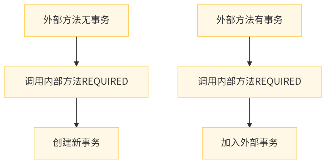 适用场景:大多数业务场景,这是 Spring 的默认传播行为。