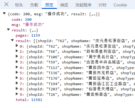 预览:指的是对响应内容的快速查看或摘要显示,可以帮助用户快速了解返回的数据结构或内容片段,我们可以看到数据在result里;