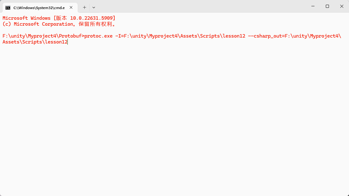 输入转换指令//protoc.exe -I = 配置路径 --csharp_out = 输出路径 配置文件名