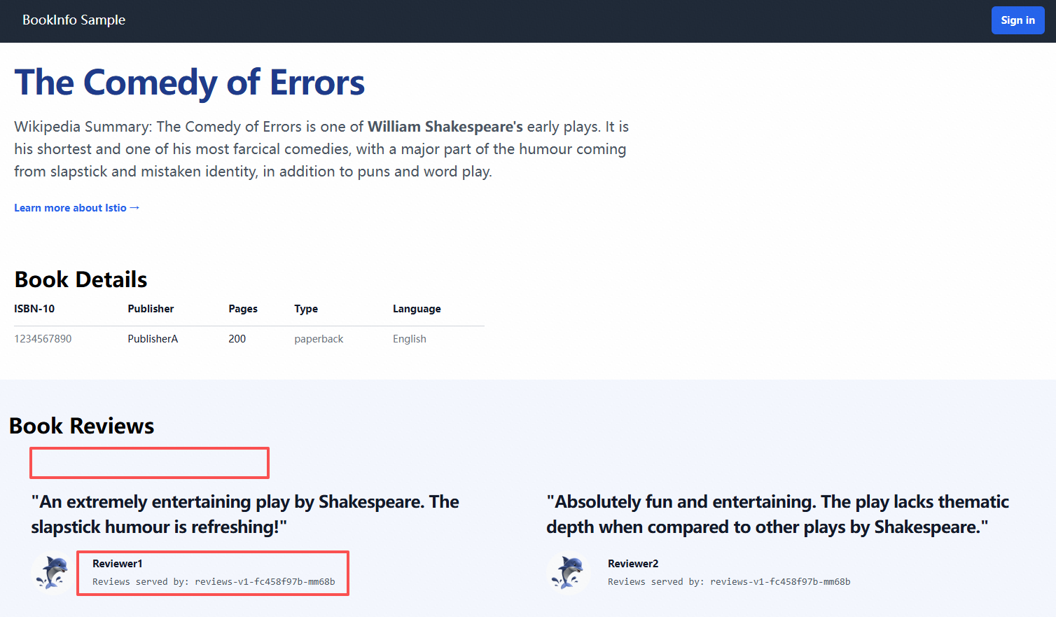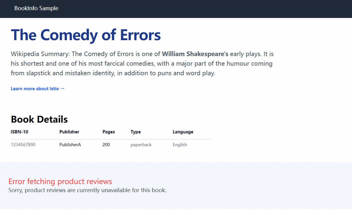 服务有自己的超时设置(默认 3 秒 + 1 次重试),所以最终你会看到页面上的 Book Reviews 部分显示为:“Sorry, product reviews are currently unavailable for this book.”