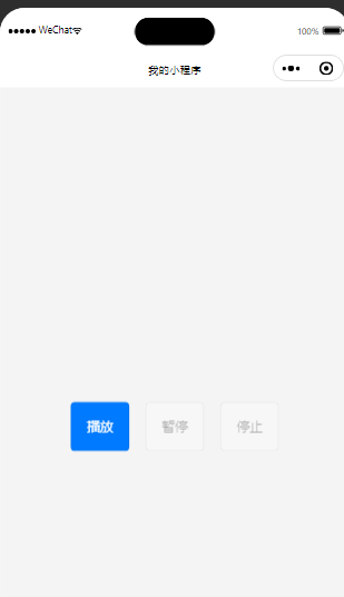 <view class="container"><view class="player-controls"><!-- 播放按钮 --><button bindtap="playAudio" class="play-btn">播放</button><!-- 暂停按钮 --><button bindtap="pauseAudio" class="pause-btn" disabled="{{!audioPlaying}}">暂停</button><!-- 停止按钮 --><button bindtap="stopAudio" class="stop-btn" disabled="{{!audioPlaying && !audioPaused}}">停止</button></view>