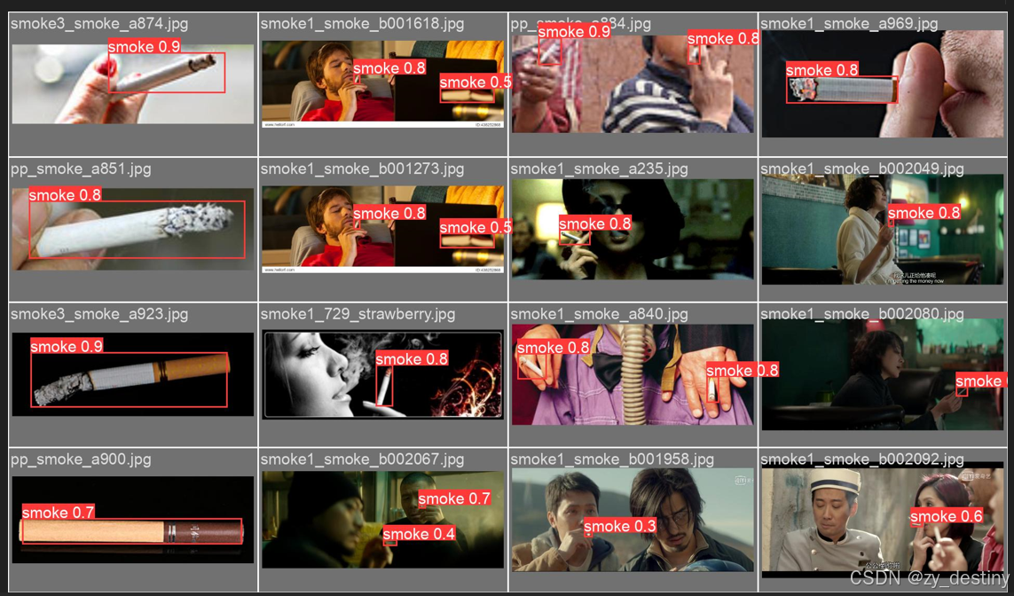 抽烟数据集总共包含8573张样本数据,其中训练集7719张,验证集854张,部分影像展示如下: