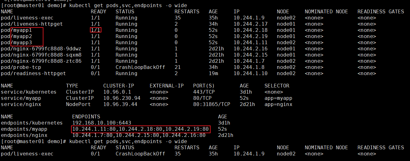 spec:selector:app: myapptype: ClusterIPports:- name: httpport: 80targetPort: 80kubectl create -f readiness-myapp.yaml