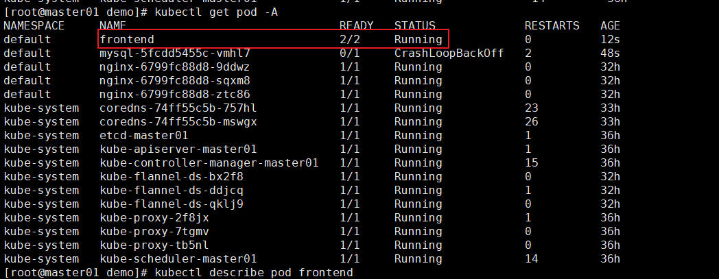 spec:containers:- name: webimage: nginxenv:- name: WEB_ROOT_PASSWORDvalue: "password"resources:requests:memory: "64Mi" # 最少 64Mi 内存cpu: "250m" # 最少 0.25 CPUlimits:memory: "128Mi" # 最大 128Mi 内存cpu: "500m" # 最大 0.5 CPU- name: dbimage: mysqlenv:- name: MYSQL_ROOT_PASSWORDvalue: "abc123"resources:requests:memory: "512Mi" # 最少 512Mi 内存cpu: "0.5" # 最少 0.5 CPUlimits:memory: "1Gi" # 最大 1Gi 内存cpu: "1" # 最大 1 CPU# 启动
