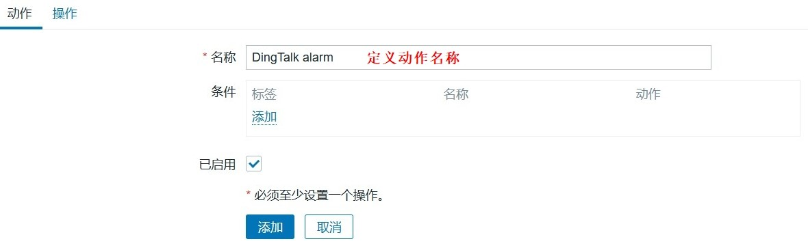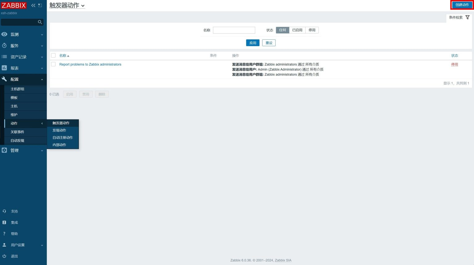 进入: 配置 → 动作 → 触发器动作 → 创建动作
