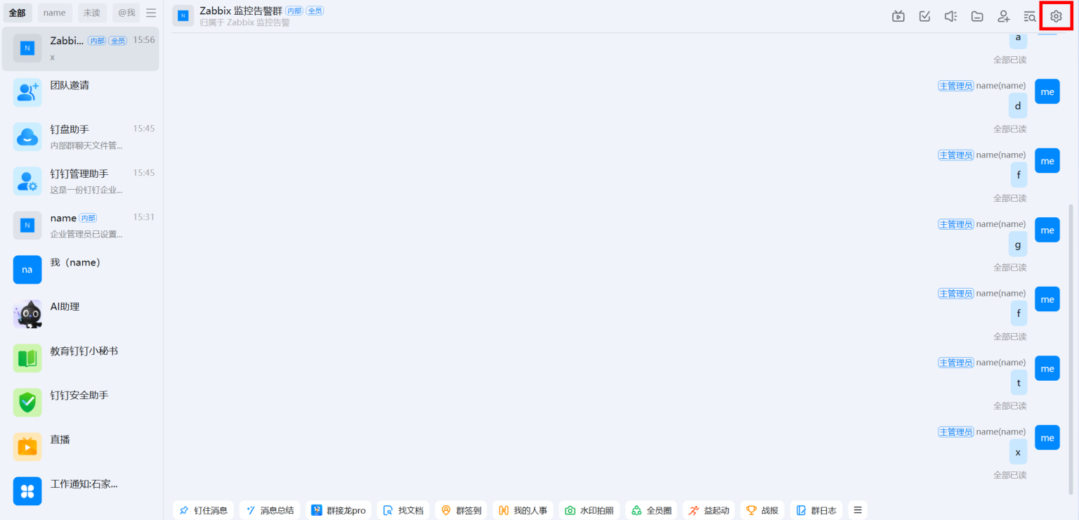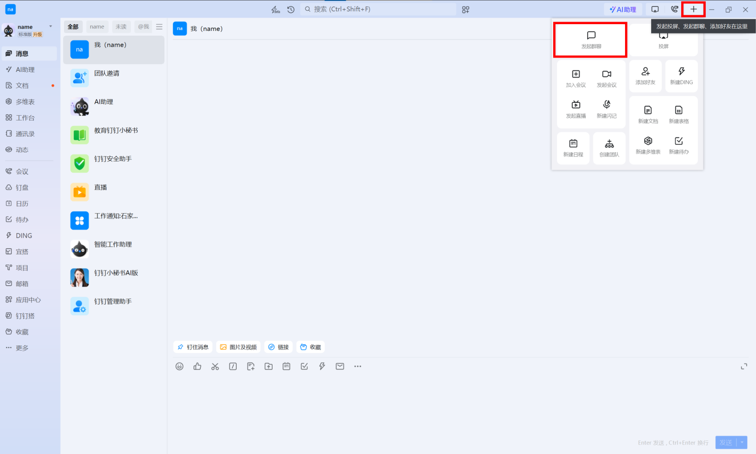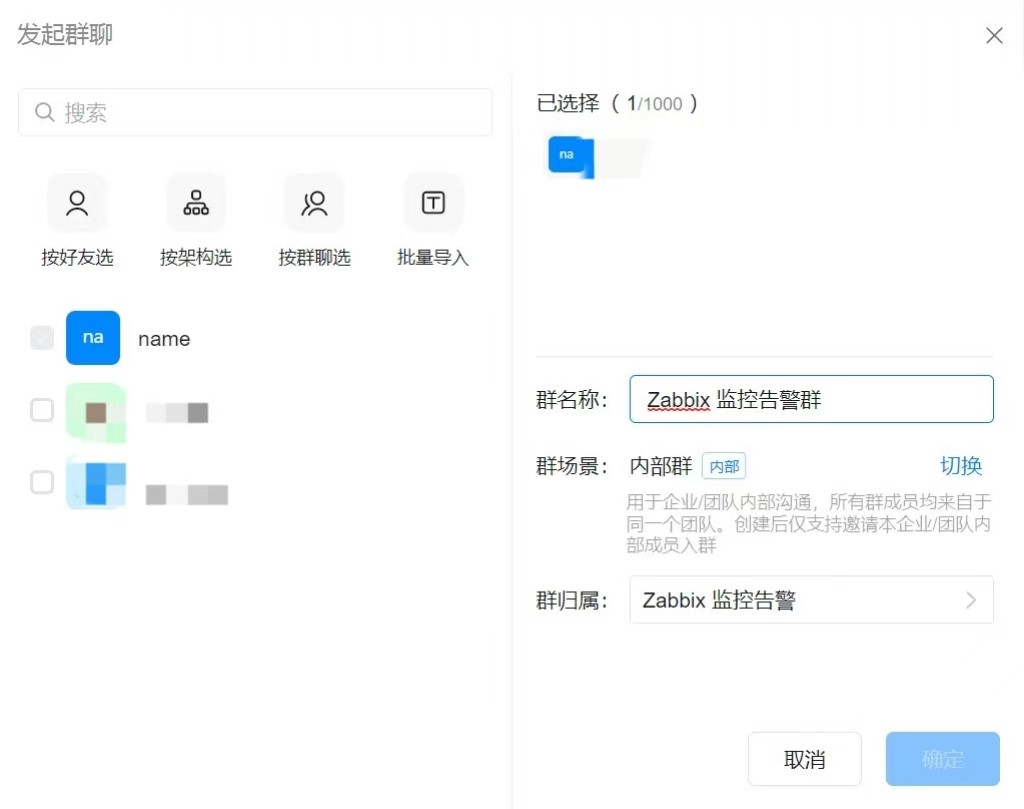首先,登录钉钉,创建一个用于接收告警信息的内部群聊。