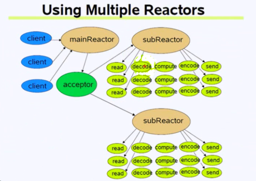 - 主线程mainLoop负责监听新连接fd,将新连接通过轮询算法分发给某个子线程subLoop。子线程subLoop处理已分配连接的IO事件(读写数据)和执行连接相关的业务逻辑。
