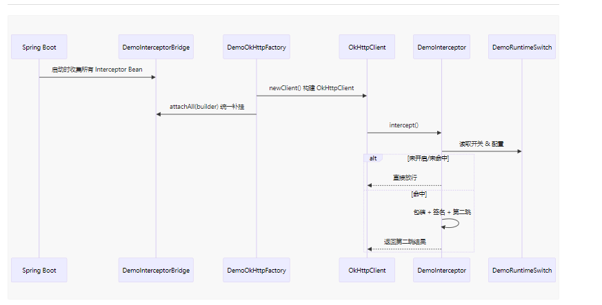 // 统一补挂所有已注册的拦截器DemoInterceptorBridge.attachAll(b);return b.build();}