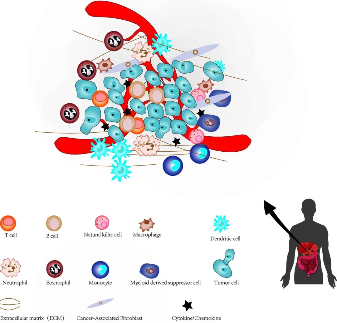 肿瘤微环境(Tumor microvironment,TME)是肿瘤中所有非肿瘤成分及其代谢产物和分泌物的总称,包括大量免疫细胞,如:髓源性抑制细胞(MDSCs)、肿瘤浸润性淋巴细胞(TIL)、巨噬细胞等,共同构成了肿瘤的免疫微环境。研究证实,TME对肿瘤生长、侵袭、转移、耐药、免疫逃逸等恶性表型有重要影响。
